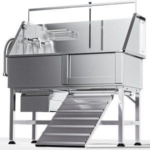 Dog Washing Station for Home, Professional 46″ Stainless Steel Dog Bathing Station, Height Adjustable Dog Grooming Tub w/Stair, Storage Drawer, Upgrade Parts(Right ramp)