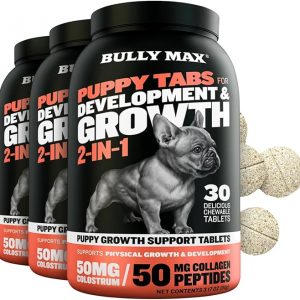 Bully Max 2-in-1 Puppy Vitamins – 30 Chewable Tablets for Growth & Development of Puppies – Multivitamin Treats & Essential Dog Supplements for Small Dogs & Large Breed Growing Pups – 3 Bottles