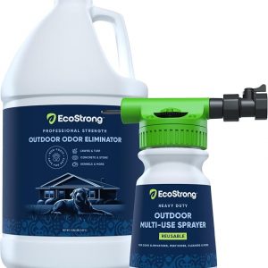 Eco Strong Outdoor Odor Eliminator | Outside Dog Urine Enzyme Cleaner – Powerful Pet, Cat, Animal Scent Deodorizer | Professional Strength for Yard, Turf, Kennels, Patios, Decks (Gallon with Sprayer)