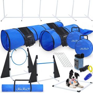 MiMu Dog Agility Equipment 10pc Obstacle Course – Customizable Dog Agility Training Equipment and Obstacle Course, Dog Agility Course Including Tunnels, Weave Poles, and Hurdles