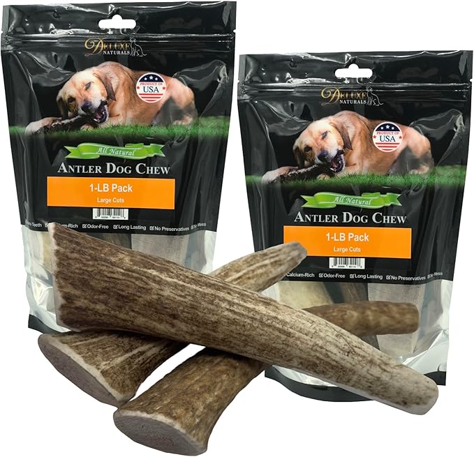 / 2 x 1-LB Large Whole Elk Antler Dog Chews (6 to 9+ in) – Long Lasting Natural Dog Bones for Medium & Large Dogs 30-80 lbs, Aggressive Chewers, Teeth Cleaning, No Rawhide
